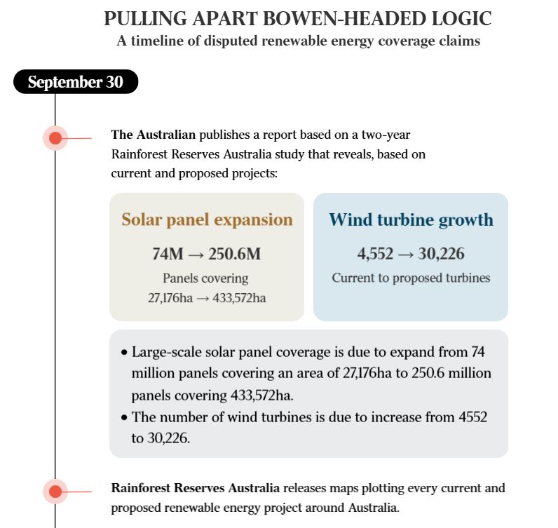 In a social media post, Mr Bowen accused conservation group Rainforest Reserves Australia of vastly over-estimating the footprint area of renewables projects proposed for Australia and of being “anti-renewable, pro-nuclear activists”.