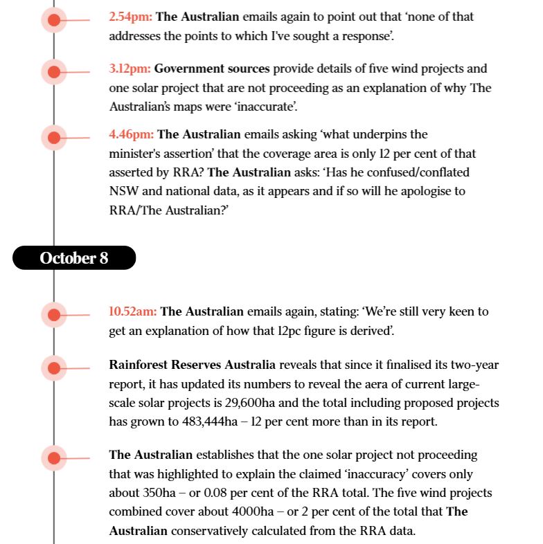 The NSW Agriculture Commissioner’s work appears only to show the area required in NSW – not nationally, which was the focus of the RRA mapping and The Australian’s graphic. Mr Nowakowski said it appeared the minister was confusing NSW projections with actual, real-time mapping of all existing and proposed projects nationally. “The large-scale solar projects that are already active in Australia cover 29,600ha or 16.3 per cent of the total of all solar mapped by RRA,” he said. “The active projects are mapped off satellite imagery and are accurate to a high level of confidence. Our total today, for all solar in Australia including proposed and existing projects, stands at 483,444ha, and counting.”